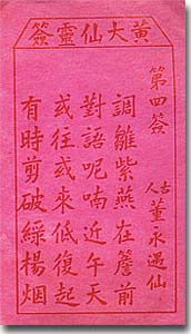 董永,东汉人,家贫,少年时卖身葬父。后遇仙女下凡,结为夫妇。此签是说董永与天仙在春天看见的一幅自然景色。檐前燕子往返穿梭,寻觅食物,回巢哺育下一代的风景图。可以告慰的是,燕子为培养下一代,一定会选择较为安全的环境筑巢,而签中第一二句,是母燕在檐前与雏燕呢喃细语,即有平安之象。